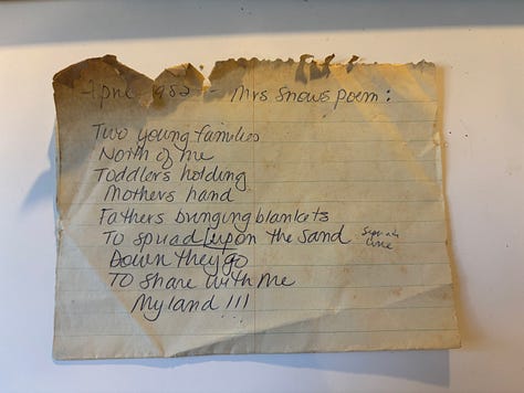 —Copy of a poem written on the beach at Arch Cape many years ago by a woman named Mrs. Snow. She wrote a poem in the sand every morning and has inspired a character who does the same in my current WIP. Read the Note I wrote about it here.